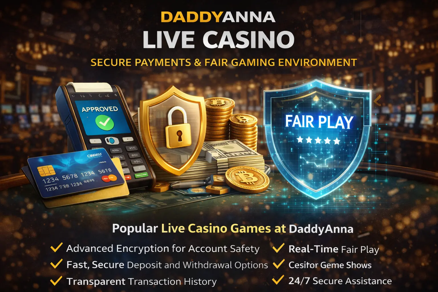 DaddyAnna Live Casino is built on a secure financial system designed to protect every transaction and maintain full transparency. DaddyAnna Online Live Casino uses encrypted payment gateways and secure account verification processes to safeguard player funds and personal data.