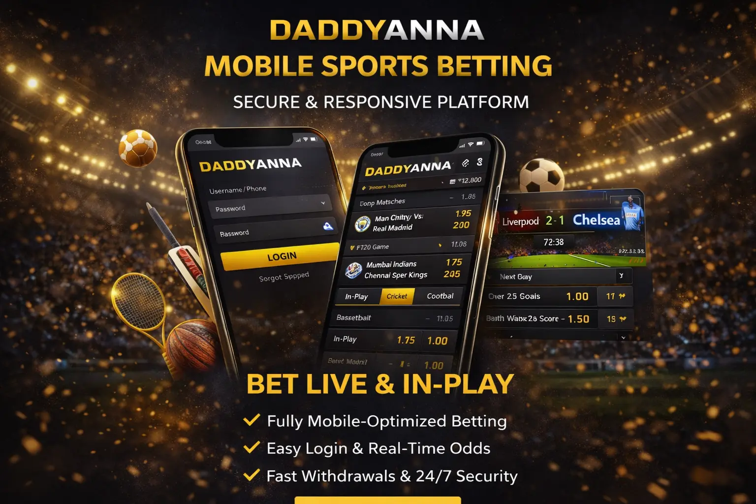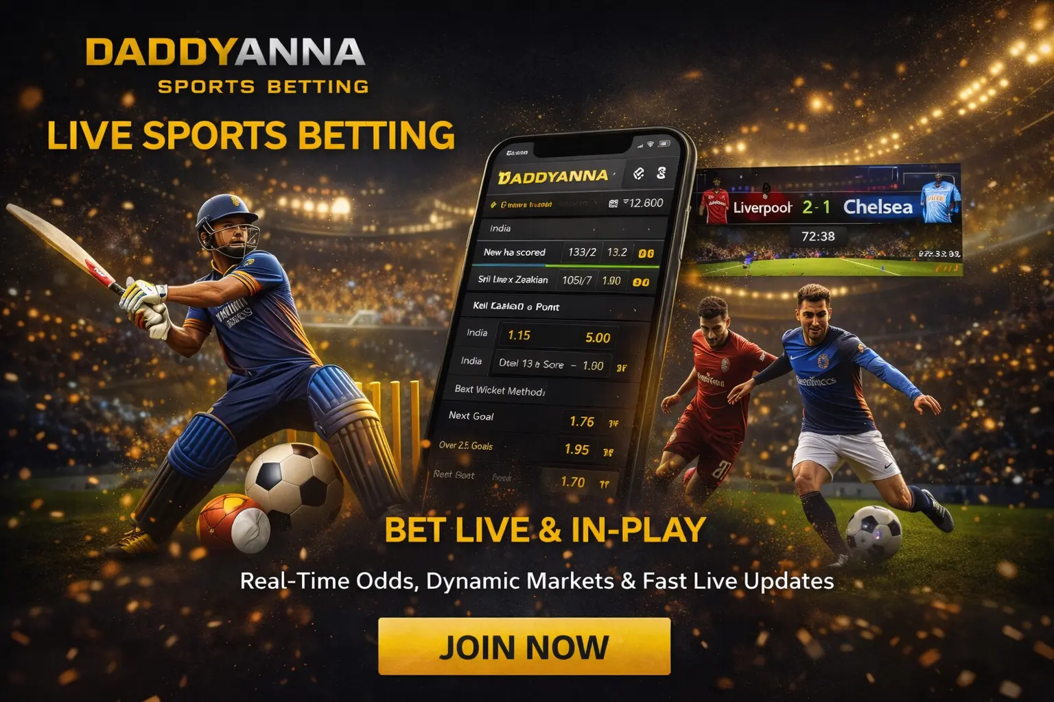 DaddyAnna Sports Betting offers cricket, football, tennis, basketball, and various international sporting events with both pre-match and live betting markets.